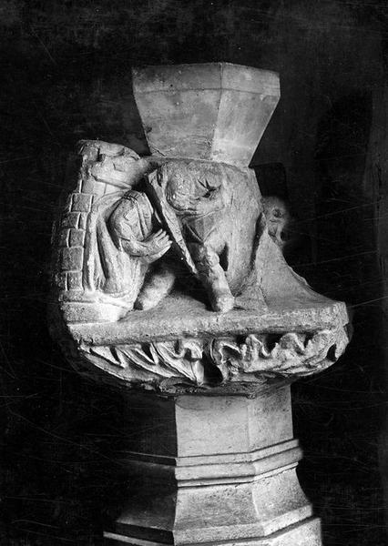 saint André, saint Pierre, saint Jean, crâne ; saint Jean (martyre, bourreau, Hérodiade, peine de mort, décollation) ; ornementation (feuille : houx)