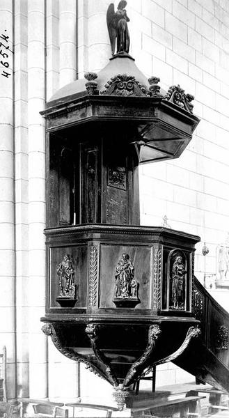 Chaire à prêcher constituée de remplois du 17e siècle ; fortement restaurée en 1876, puis en 1880 1882 ; selon biais, aurait été achetée aux bénédictins de Meynac