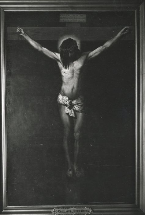 Don de l'Empereur. Copie du Christ de San Placido de Diego Vélasquez conservé au musée du Prado, exécutée en 1867 par Virginie Eugénie Hautier pour la salle d'audience du tribunal civil de Barbezieux. On ignore quant elle fut transportée dans l'église.
