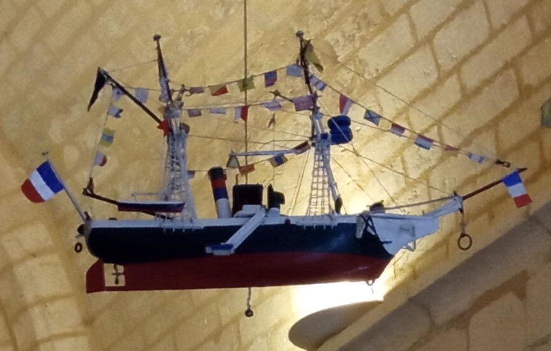 représentation naïve d'un canonnière voile-vapeur du XIXes réalisée par un charpentier de marine dénommé Baratte vivant à la fin du XIXes à Saint-Simon
