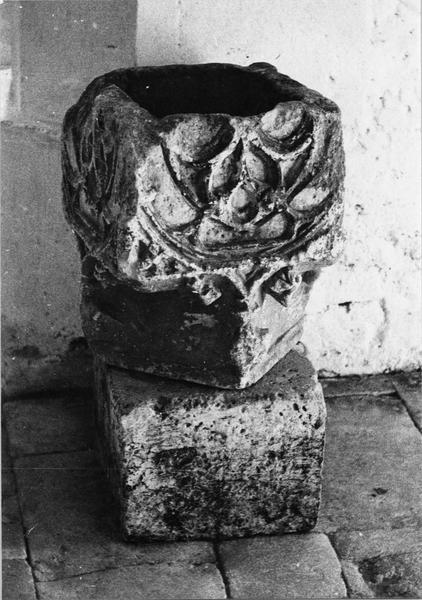 chapiteau (?) ; clef de voûte (?) ; bénitier