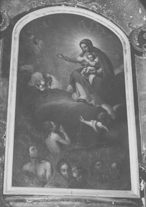 tableau : la Vierge à l'Enfant intercédant pour les âmes du Purgatoire