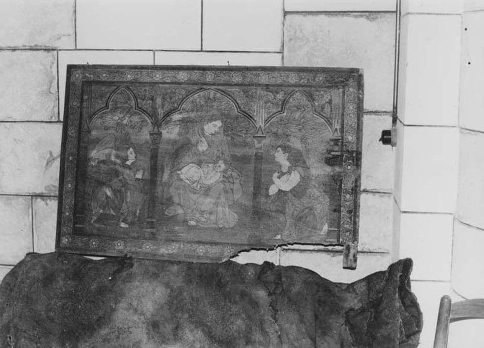 Tableau peint sur bois sous la forme d'un triptyque.