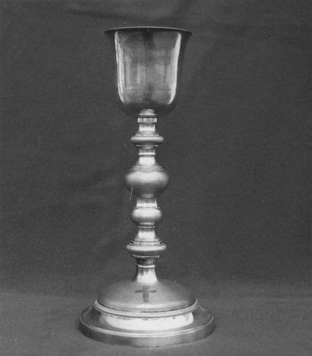 Calice en cuivre argenté et coupe dorée, à décor très sobre.