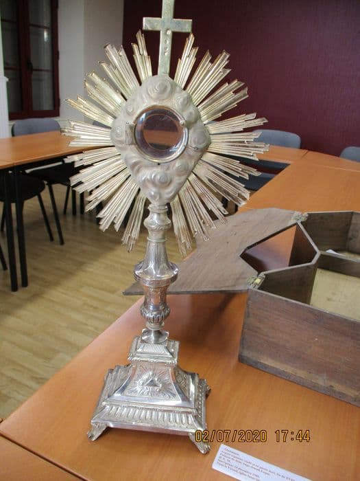Ostensoir en argent repoussé, ciselé et en partie doré.