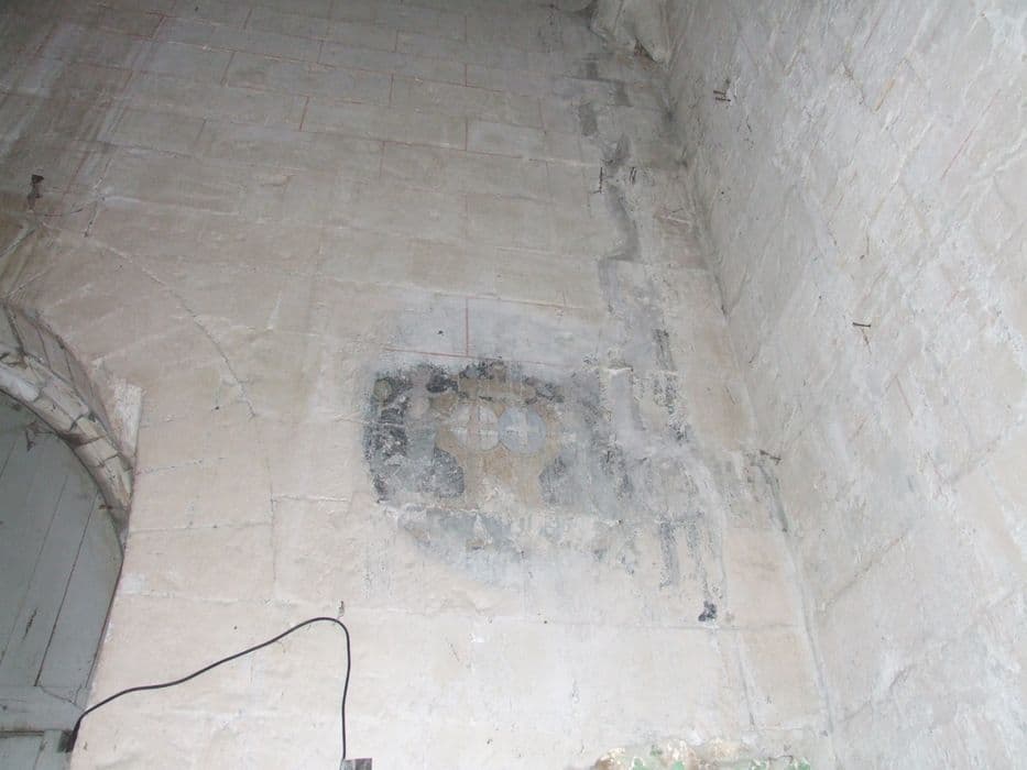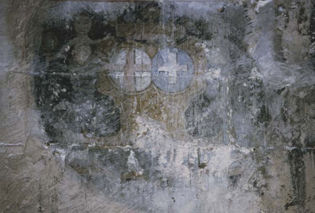 Litre funéraire comportant notamment deux croix peintes à même le mur.