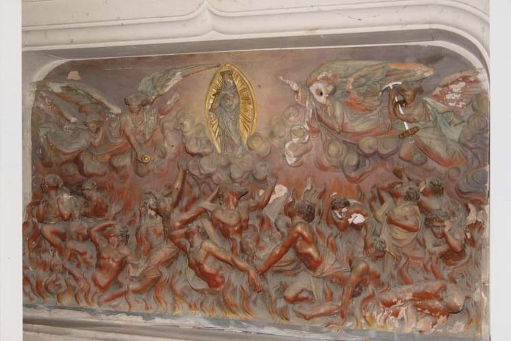 POP | Plateforme ouverte du patrimoineautel (autel latéral) avec son bas-relief : La Vierge désaltérant de son lait les âmes du purgatoire