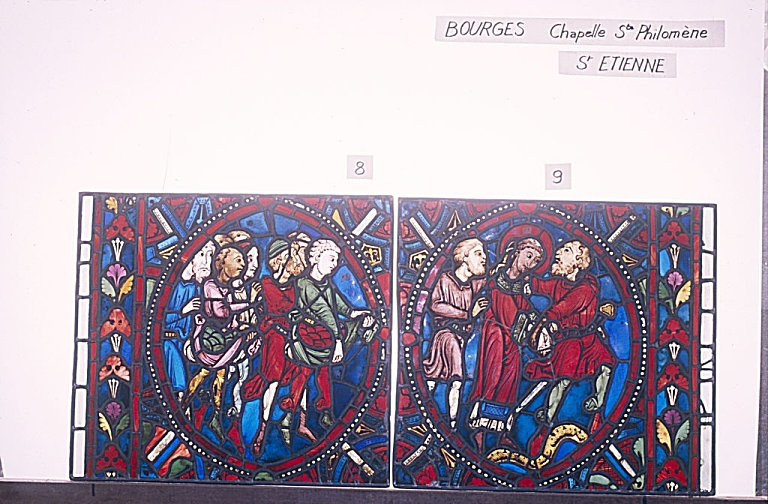 POP | Plateforme ouverte du patrimoine22 verrières figurées : le Jugement dernier ; l'enfant prodigue et tanneurs ; la Passion du Christ et pelletiers ; scènes de la vie des saints apôtres et martyrs ; donateurs ; le bon samaritain et tisserands ; l'Apocalypse ; la parabole de Lazare et du mauvais riche et maçons (baies 3 à 24)