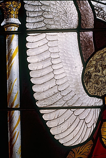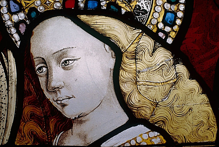 verre transparent (coloré) : grisaille sur verre, jaune d'argent ; verre : gravé