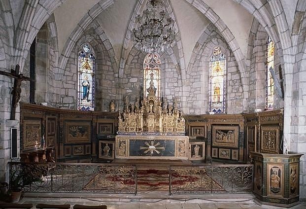 La partie inférieure des lambris situés vers la nef est masquée par des stalles sans rapport avec les lambris.