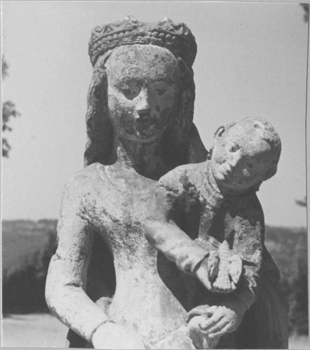 La tête de l'Enfant Jésus a été cassée puis mal refixée ; polychromie très lacunaire.