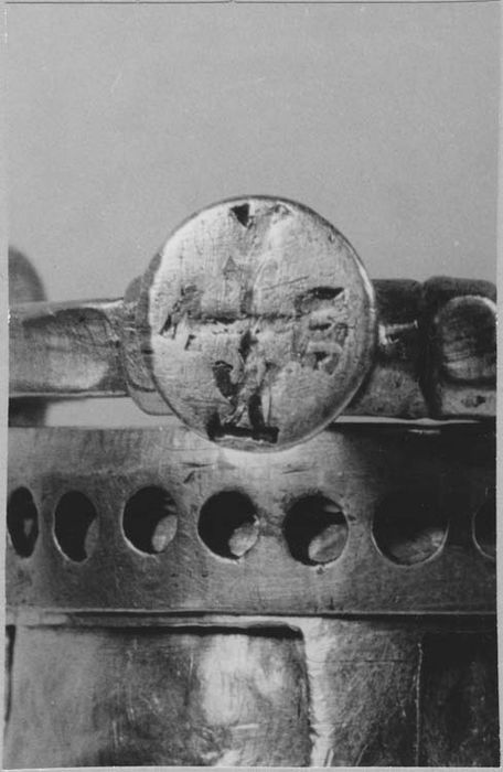 inscription grecque niellée sur le chaton de l'anse de part et d'autre d'une croix : L/DOY