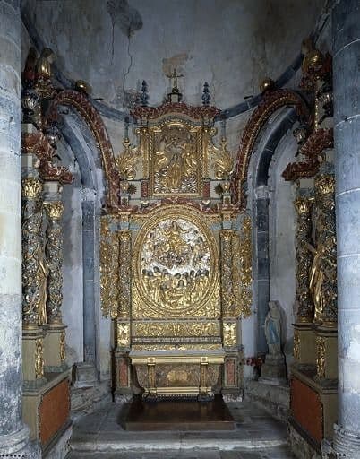 POP | Plateforme ouverte du patrimoineretable architecturé de la chapelle de la Vierge, 2 demi-reliefs : l'Assomption, le Couronnement de la Vierge, et 2 statues : saint Joseph, sainte Anne