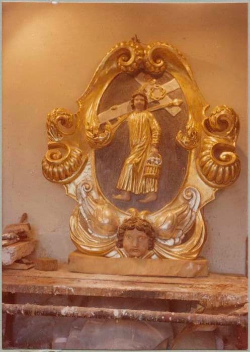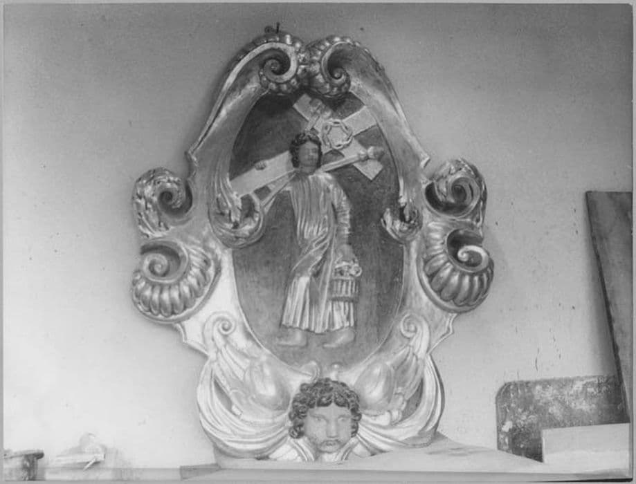 POP | Plateforme ouverte du patrimoinerelief (cartouche d'applique) : Jésus adolescent portant les instruments de la Passion