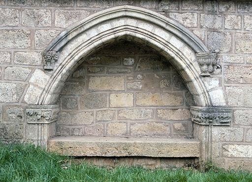 Après la destruction en 1894 de l'église paroissiale d'Ayen bas, une nouvelle église fût édifiée en remployant des éléments anciens tel cet enfeu.