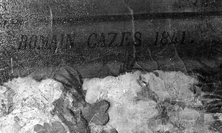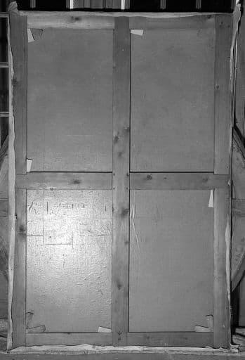 toile (support) : peinture à l'huile ; bois, stuc (cadre) : taillé, doré