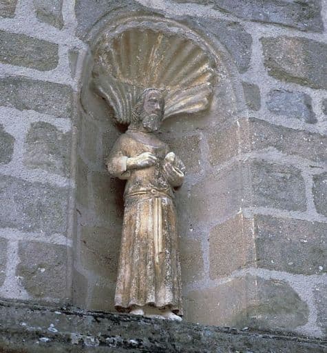 dans une niche, sur la façade, au-dessus de la porte d'entrée
