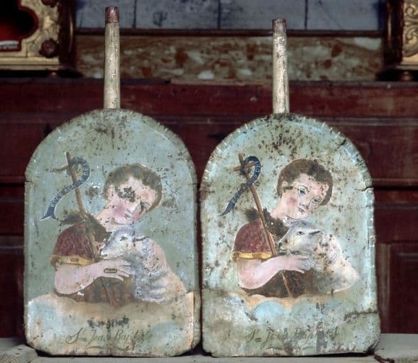 POP | Plateforme ouverte du patrimoine2 panonceaux de cierge de la confrérie des pénitents blancs : saint Jean-Baptiste enfant