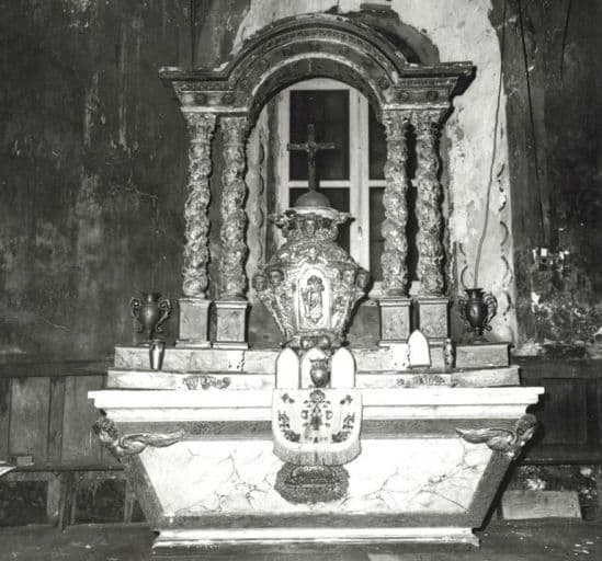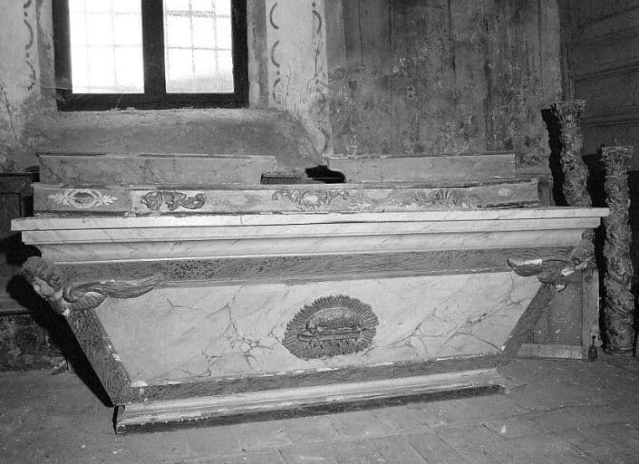 POP | Plateforme ouverte du patrimoineautel tombeau, 2 gradins d'autel, tabernacle urne, exposition, retable (ancien maître-autel de l'église paroissiale)