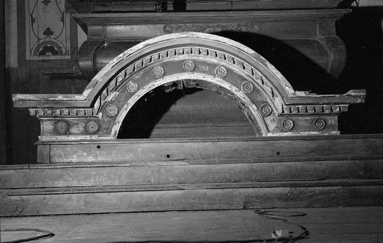 sur le mur du choeur et dans la tribune (éléments manquants dans la sacristie ?)
