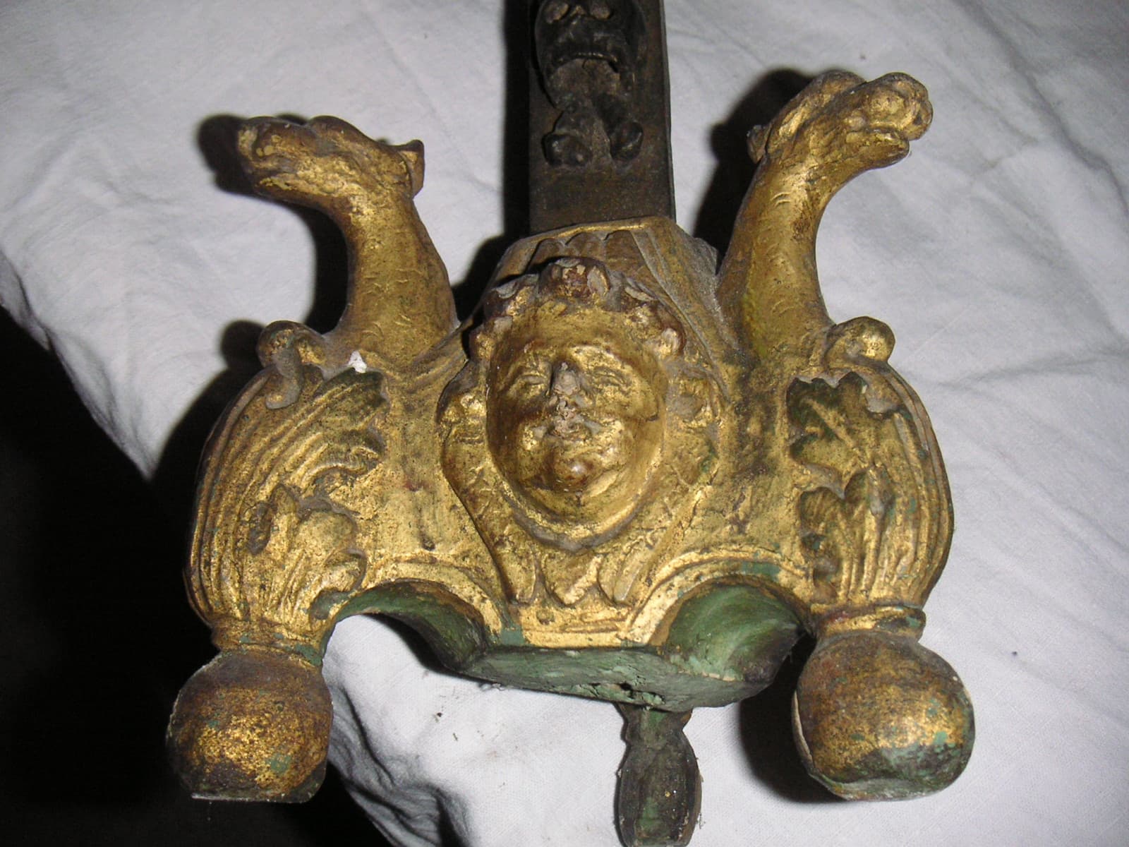 bois : taillé, peint, doré, sur apprêt, peint faux or