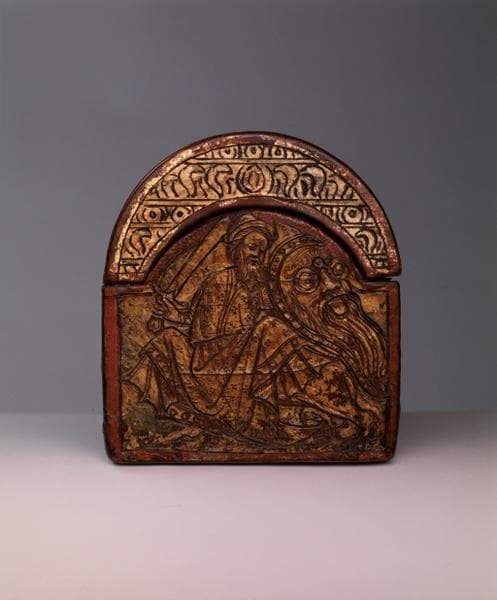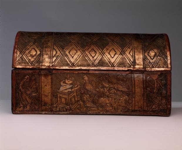 bois fruitier (structure) ; cuir (application) : incisé, doré, teinté, peint