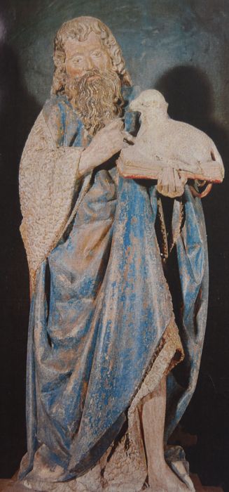 Oeuvre de la 2e moitié du 15e siècle, réplique aux dimensions réduites du saint Jean-Baptiste de Châteauneuf (21). Cette statue est attribuée par Pierre Quarré à l'imagier du duc Philippe le bon, Antoine Le Moiturier.