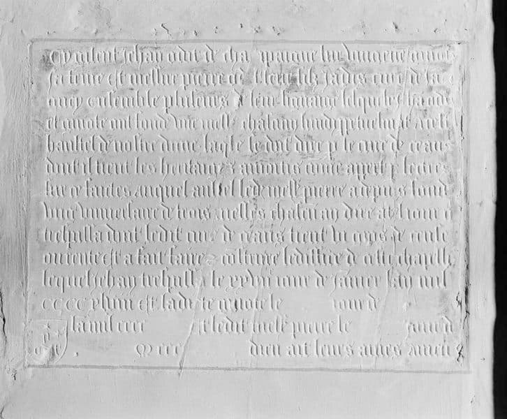 POP | Plateforme ouverte du patrimoineplaque commémorative (plaque funéraire et de fondation) de Jehan Odot, Guiotte sa femme et Pierre leur fils
