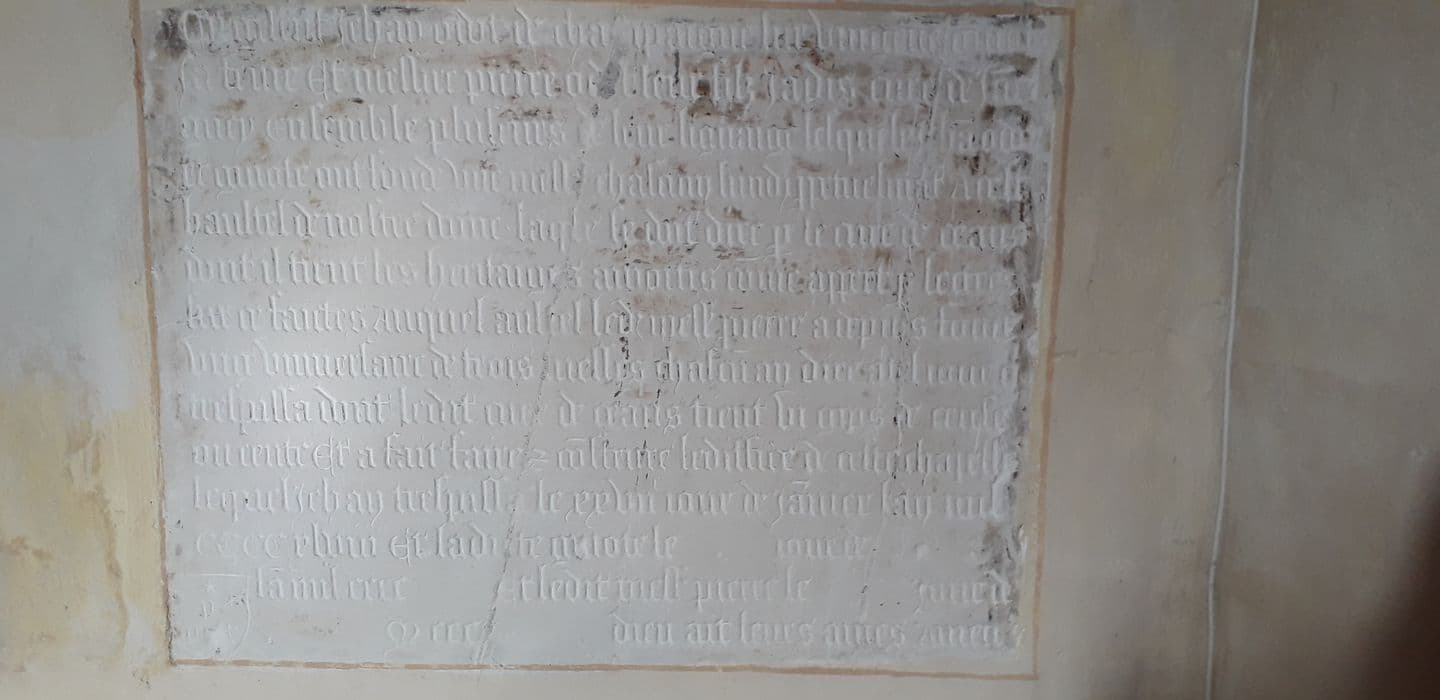 plaque commémorative (plaque funéraire et de fondation) de Jehan Odot, Guiotte sa femme et Pierre leur fils
