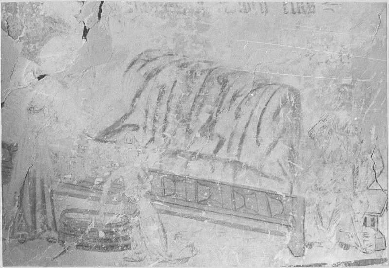 inscription peinte en caractères gothiques au dessus de la naissance de saint Jean-Baptiste : (NON SURREXIT MAJOR) IOHANNE BAPTISTA/IOHANNES NOMEN ESTIS