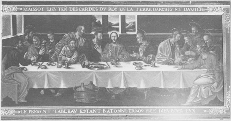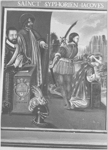 tableau (triptyque) : la Cène, le Martyre de saint Symphorien, les donateurs, l'Annonciation