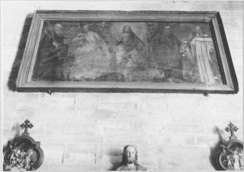 tableau : le Christ, les apôtres Pierre et Paul, saint Benoît et saint Bernard, aux armes de l'abbé de Citeaux Nicolas II Boucherat