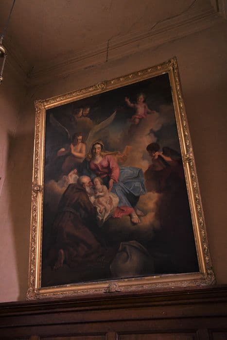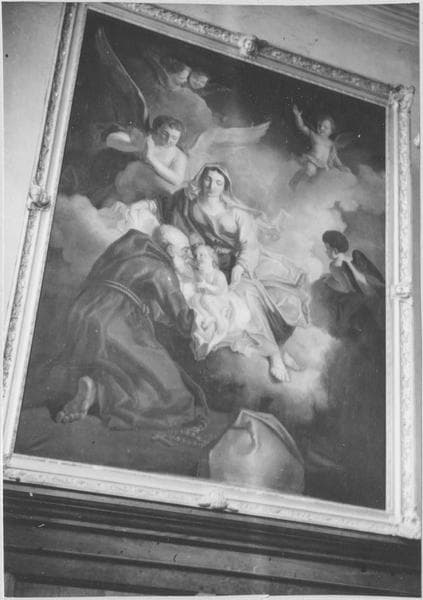 tableau : la Vierge présentant l'enfant Jésus à un moine