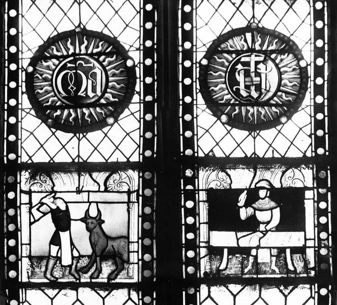 verrière de la baie 27 : Vie de saint Jean-Baptiste et Corporation des bouchers