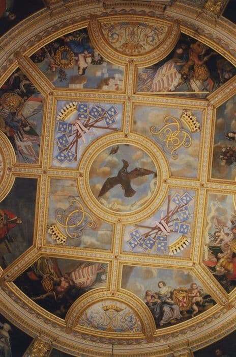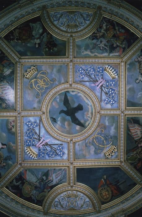 POP | Plateforme ouverte du patrimoineensemble du décor peint de la tour dorée représentant des scènes mythologiques avec armoiries et devises
