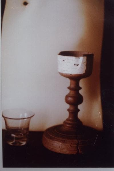 Calice avec fausse coupe en bois tourné, coupe en verre.