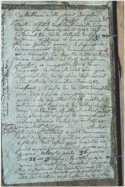 Tableau témoignage réalisé par Favier, cuisinier maître d'hôtel de l'évêque, Mgr de Mérinville, en 1792.