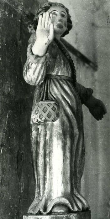 Doute sur le matériau : statue en bois (arrêté et fiche CAOA) ou en pierre (base CAOA).