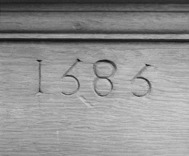 chêne (structure) : taillé, mouluré petit cadre ; fer (garniture)
