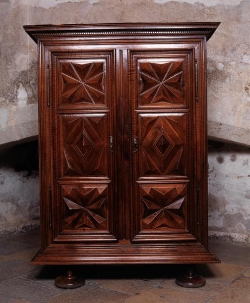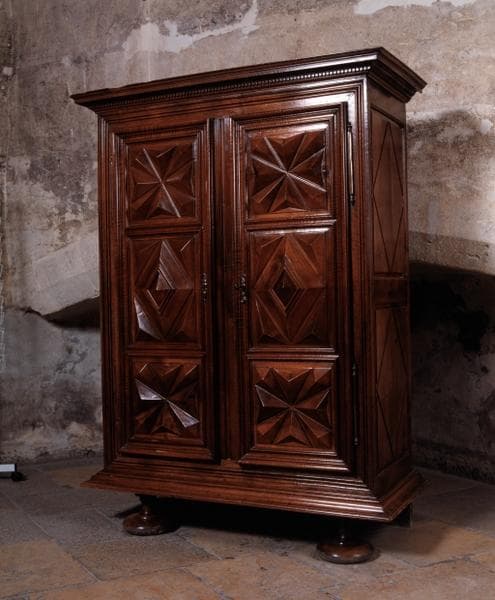 noyer : taillé, tourné, mouluré ; fer (garniture) : forgé, découpé, gravé