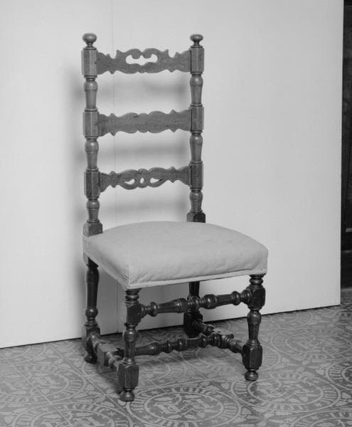 noyer : taillé, chantourné, tourné, ajouré ; matériau textile (garniture) : toile