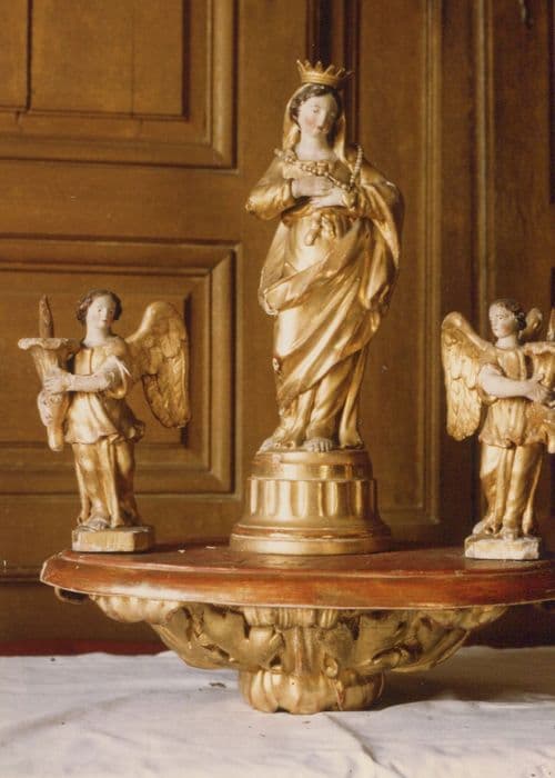 trois statues (statuettes) : Vierge à l'Enfant et deux anges cérophéraires