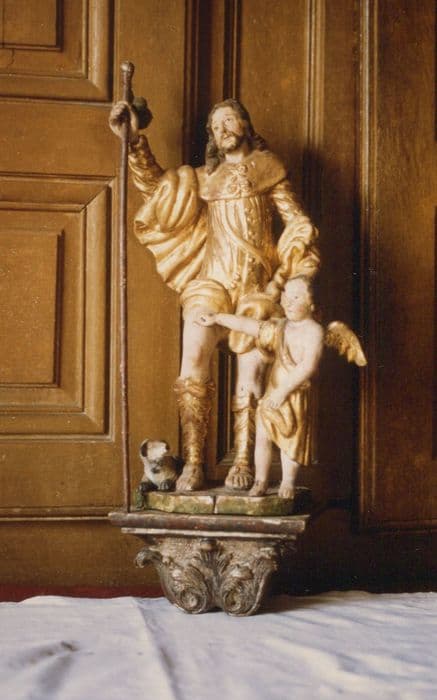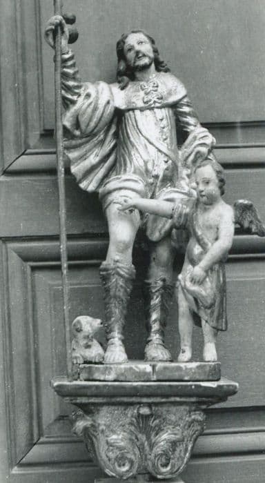 groupe sculpté de bâton de procession : Saint Roch