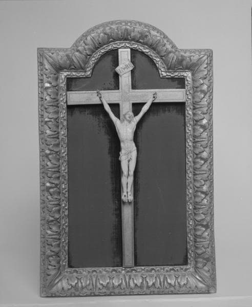 ivoire : taillé ; chêne : taillé, doré, décor en relief, décor dans la masse ; soie : velours coupé