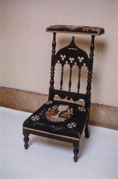 bois fruitier : taillé, tourné, ajouré, chantourné, peint ; laine (garniture) : tapisserie au point