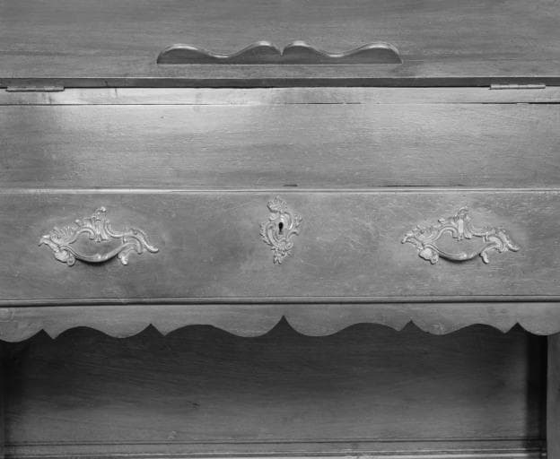 noyer : taillé, chantourné ; fer (garniture) : forgé ; bronze (garniture) : fondu