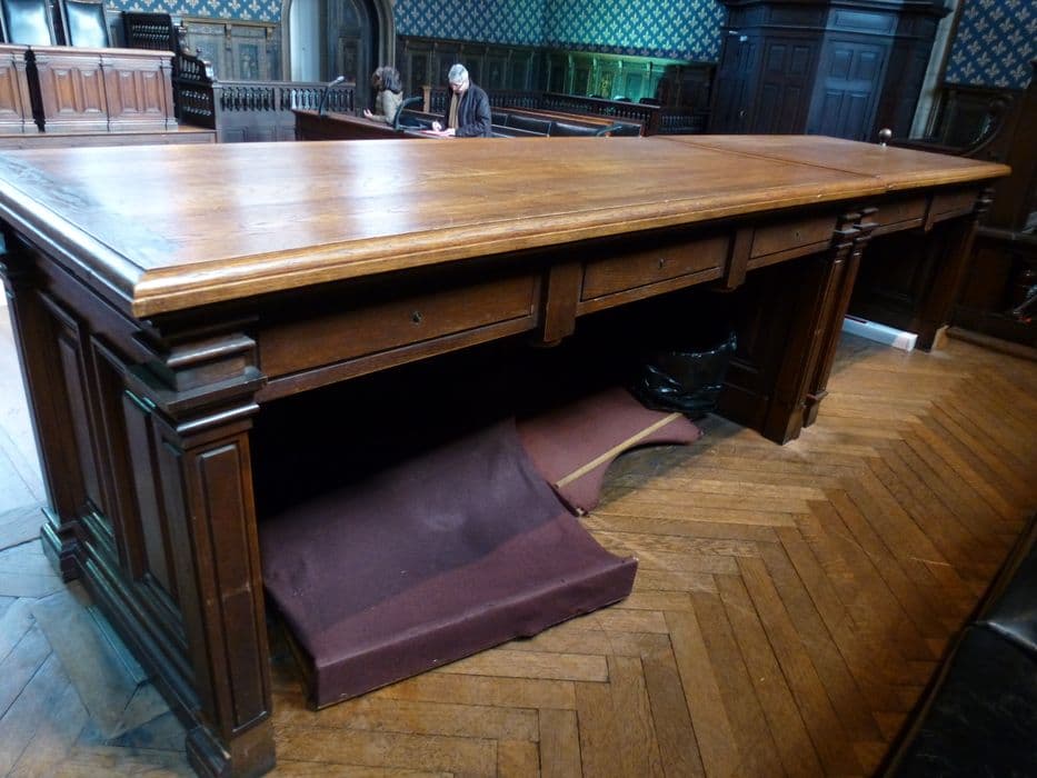 Deux bureaux à deux tiroirs, six bureaux à trois tiroirs, et le bureau du président.