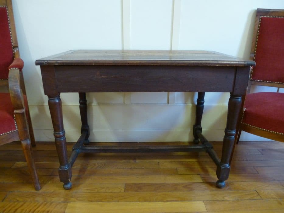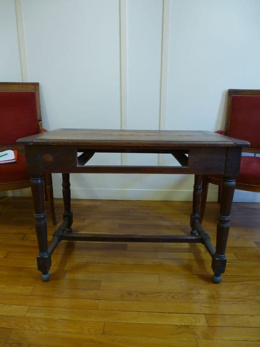 Table à pieds balustres et entretoise, qui comportait un tiroir aujourd'hui disparu.