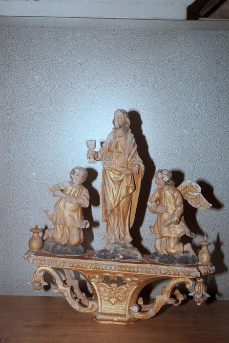 POP | Plateforme ouverte du patrimoinebâton de procession-reliquaire : Christ présentant un calice et deux anges adorateurs