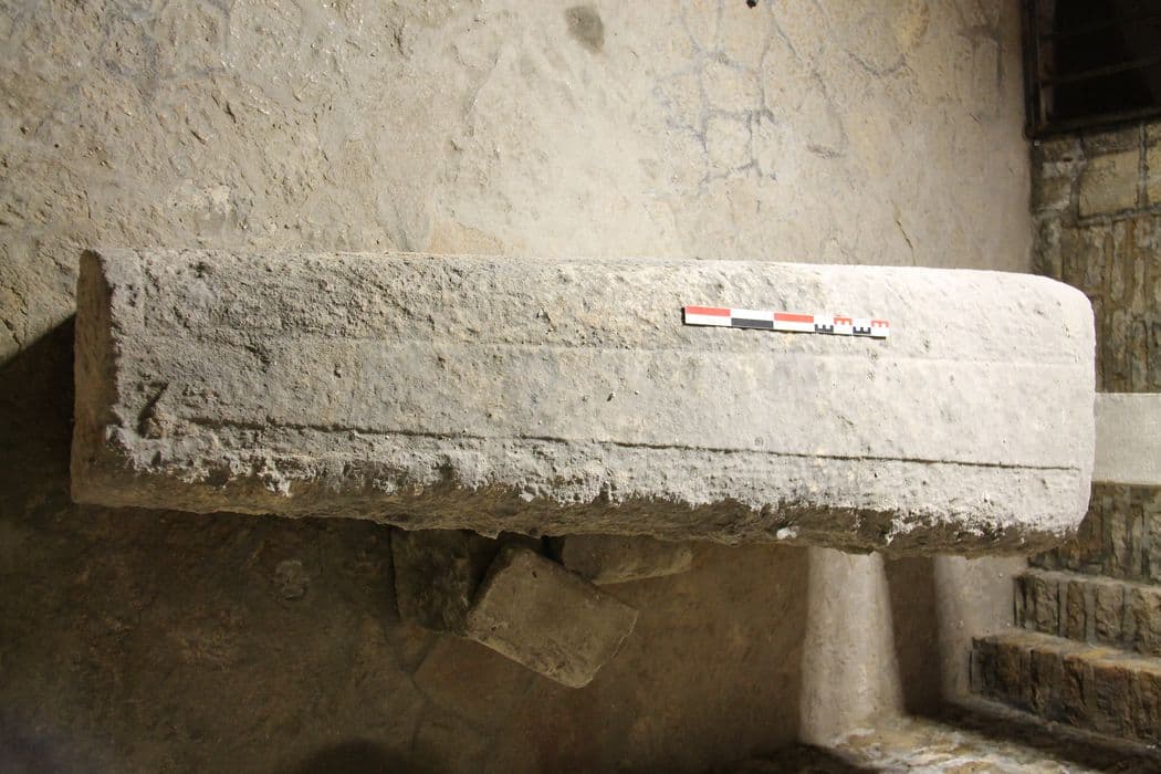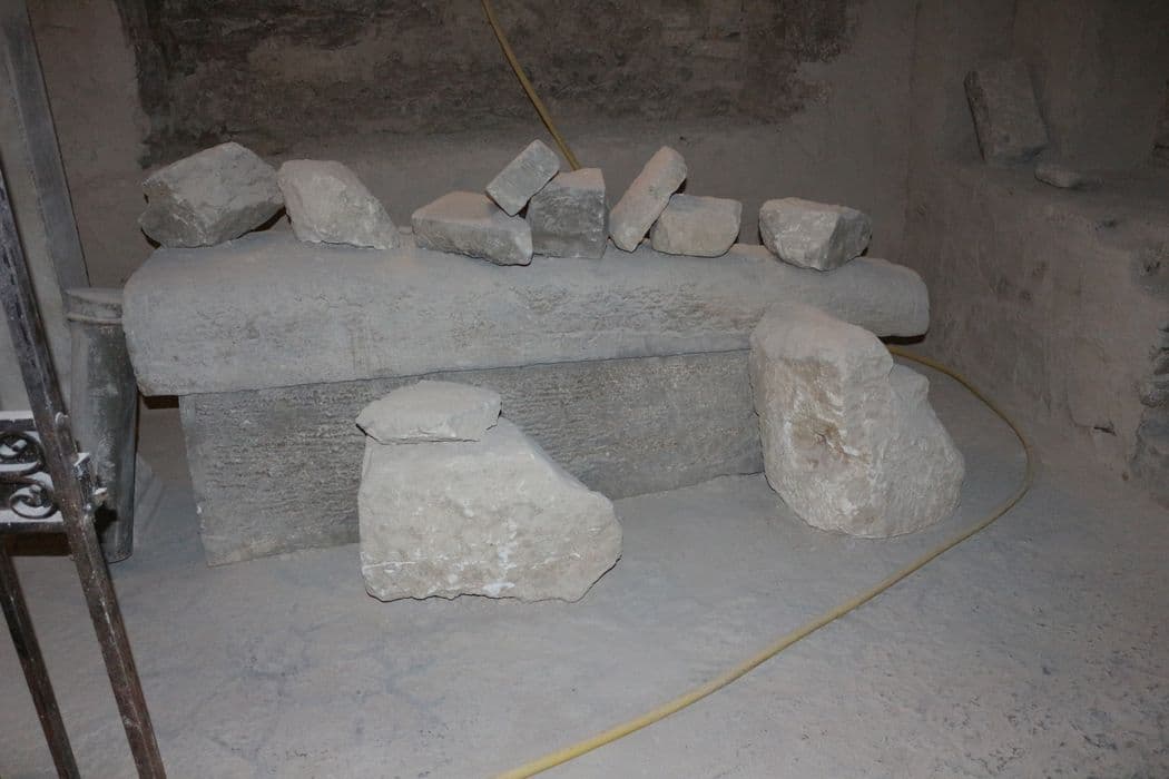 Contexte de découverte : indéterminé. Localisation originelle : indéterminée. Localisation actuelle : nord du vestibule de la chapelle orientale. Projet de destination : dans une chapelle de la crypte ? au musée archéologique ?